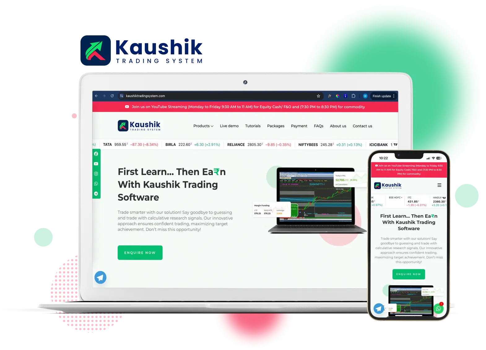 We designed a website for Kaushik Trading System, a software specializing in stock market trading