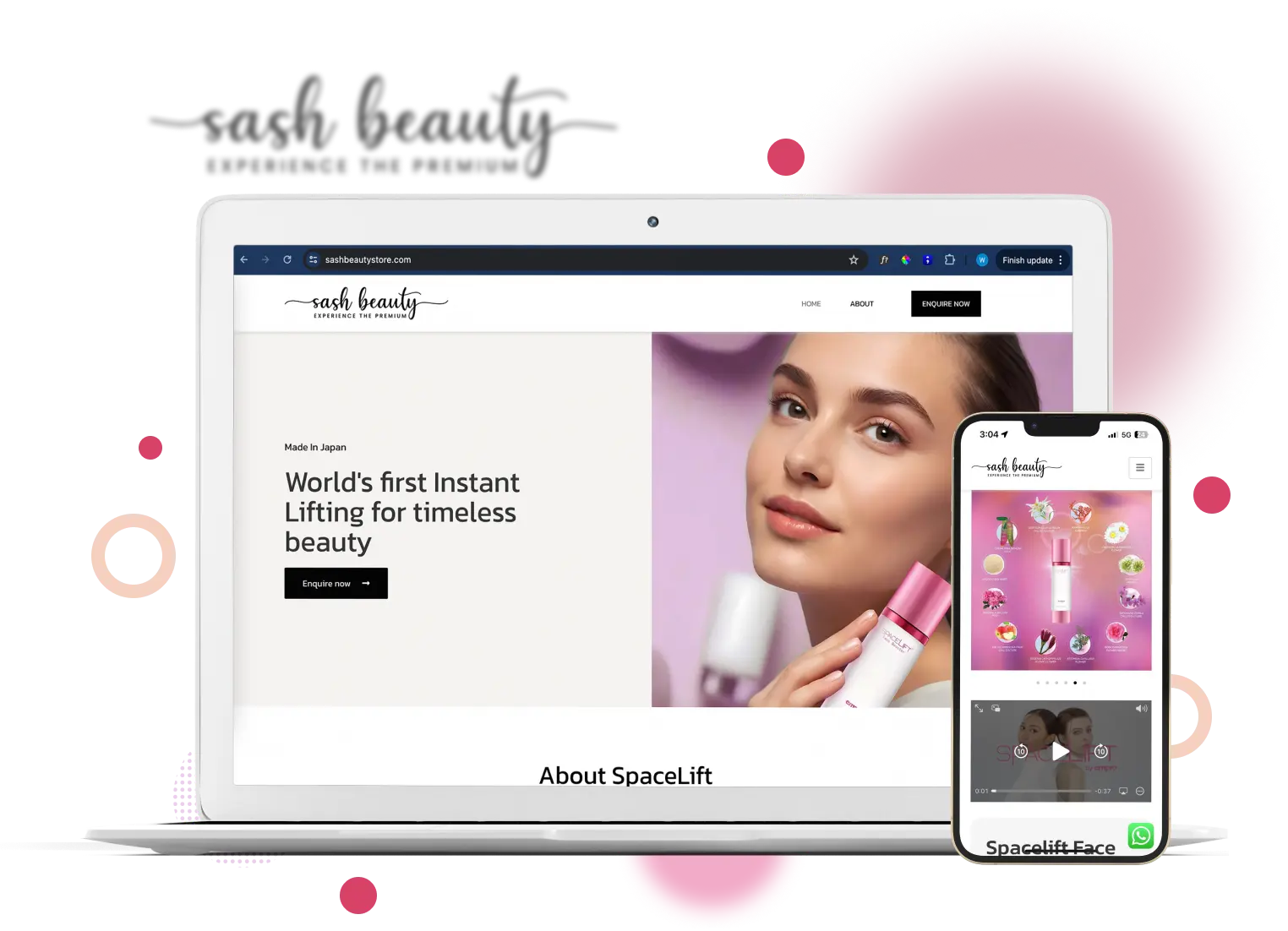 Designed website for Sash Beauty, showcasing a premium range of beauty products designed for elegance & luxury